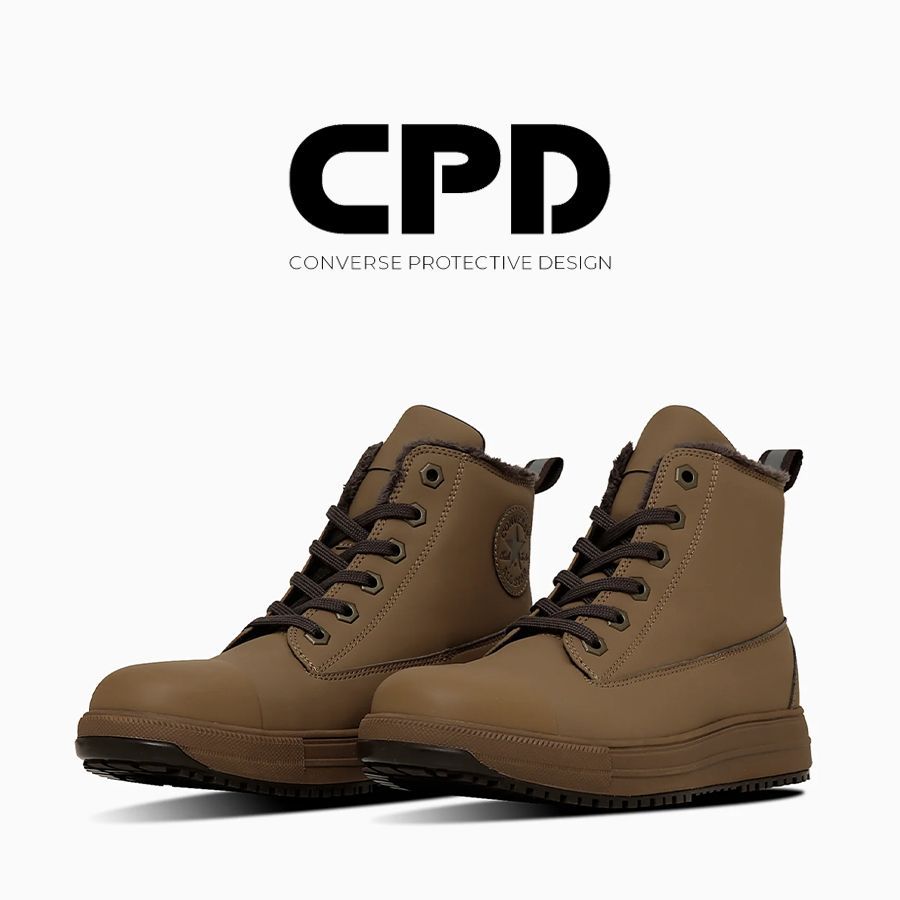 CPDとは JSAA規格が定める安全性や耐久性、コンバースならではのデザイン性を兼ね備えたプロテクティブスニーカーラインです。 つま先部の耐衝撃性や耐圧迫性、表底の剥離抵抗、耐滑性、踵部の衝撃吸収性などの性能に加え、作業において必要となるクッション性や屈曲性など機能を付加しました。