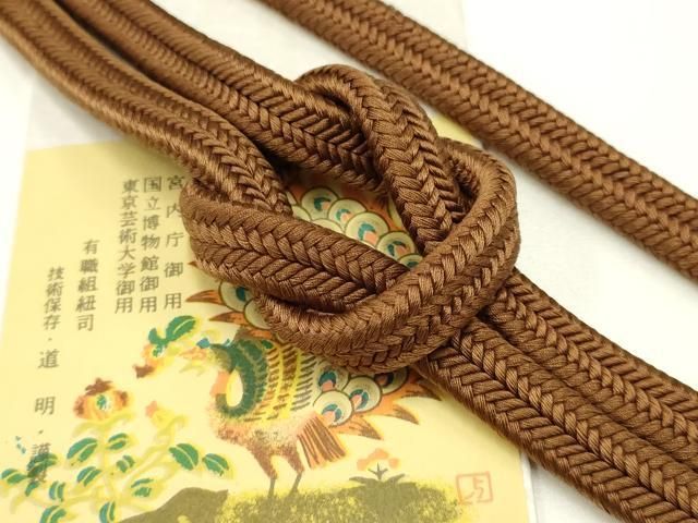 平和屋着物 上 有職組紐道明 帯締め 冠組 唐茶色 宮内庁御用 国立博物館御用 東京芸術大学御用 ay