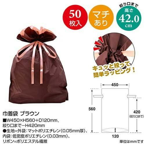 タカ印 巾着袋 ブラウン 450 560 120 50 P 3661