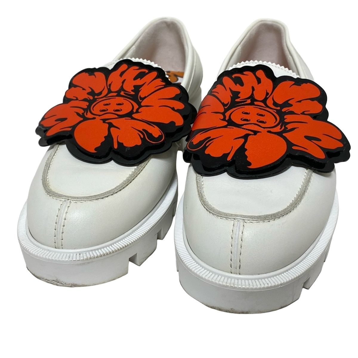 クリスチャンルブタン ローファー 39 レディース - 白×レッド×黒 フラワー 花 レザー