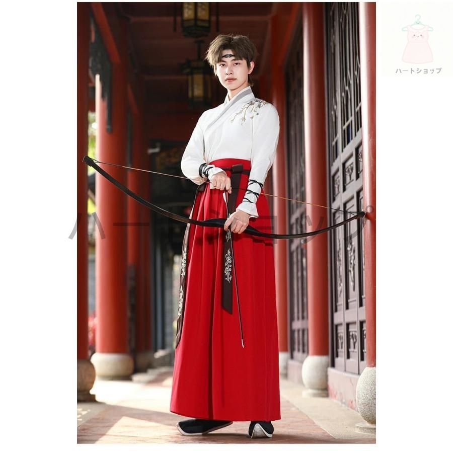 中華コスプレ衣装 メンズ 漢服 唐装 中華服 チャイナ服 中華衣裳 袴風 2点セット 3点セット 鶴刺繍 エスニック 留袖羽織 細袖ブラウス スカ