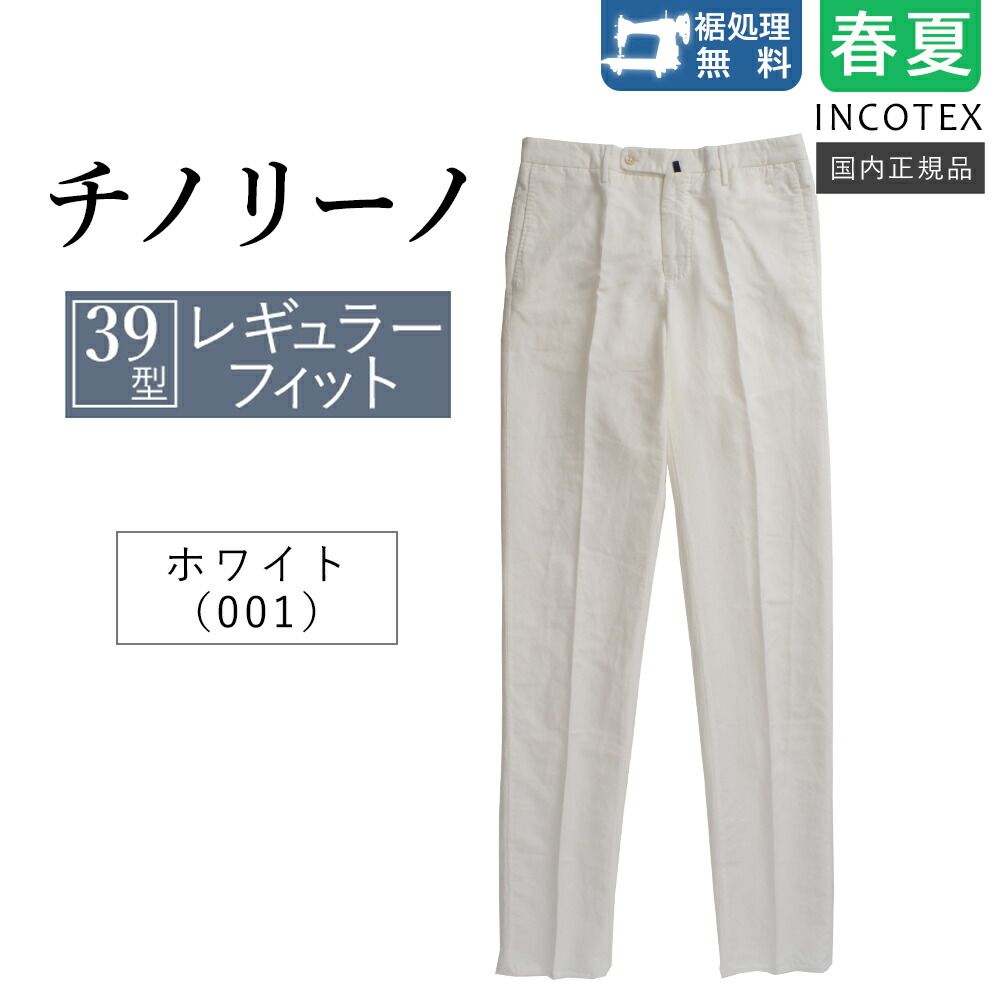インコテックス 春夏秋 39型 チノリーノ ホワイト 1 W 0039-9189 リネン混紡 ストレッチ無し レギュラーフィット INCOTEX 裾上げ無料