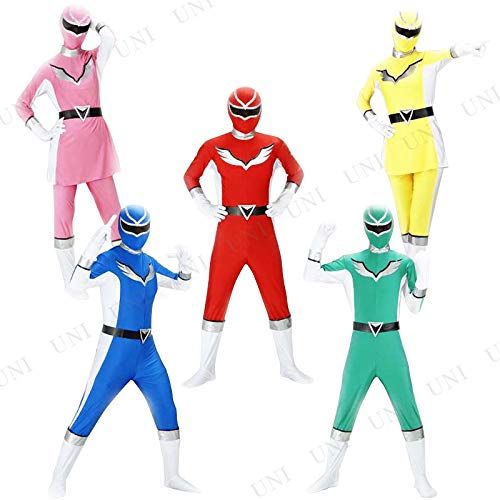 ピンク、ブルー、レッド、グリーン、イエローに変身!!「主な仕様」セット内容(1点あたり) : 全身タイツ×1 / マスク×1 / 手袋×1(両手) / ベルト×1