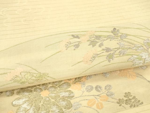平和屋着物 夏物 アンティーク 大正ロマン 九寸名古屋帯 流水草花文 金銀糸 正絹 cm