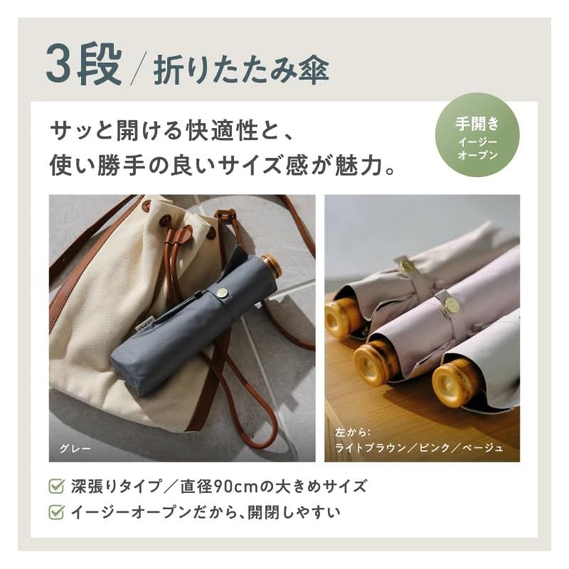 2025 最強の日傘 日傘 UVO ウーボ CALM 3段折 無地mini グリーン 遮光率 UVカット率100% UPF 50 晴雨兼用 紫外線対策 折りたたみ傘 親骨55 cm 通勤 通学 旅行 オシャレ 女性 レディース 01-10