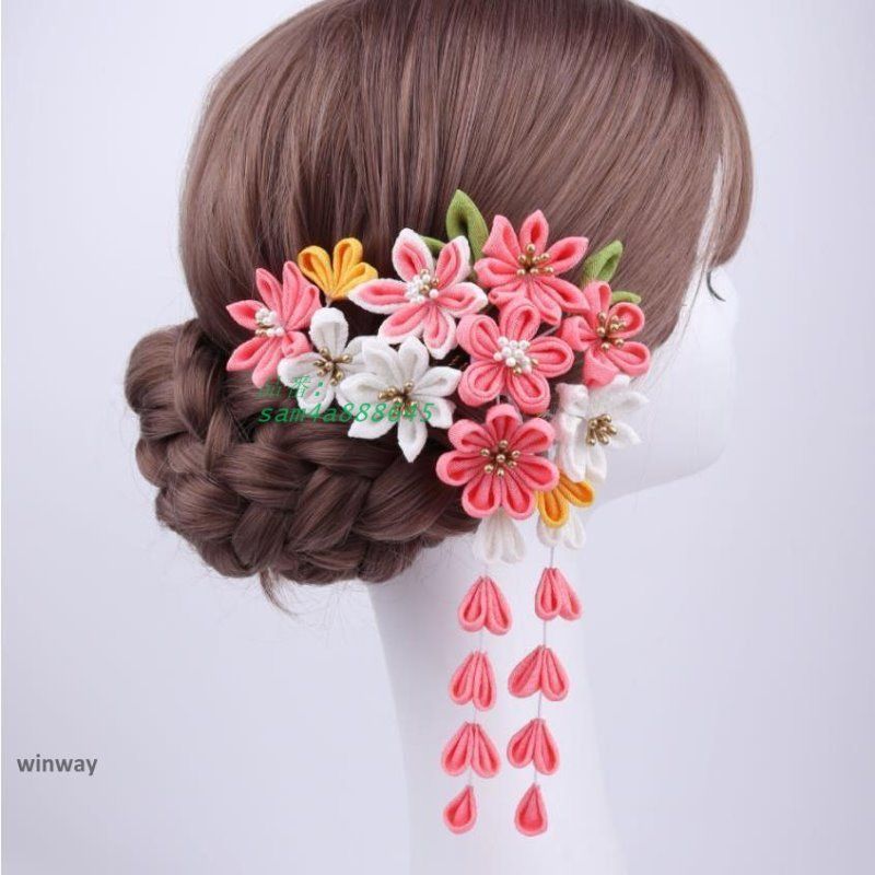 赤字覚悟!2点セット 髪飾り ヘアアクセサ和装小物 つまみ細工 ヘッドドレス 成人式 花火大会 ピンク 浴衣 イベント アレンジ 着物 卒業式 パープル レッド am 4 a 888645