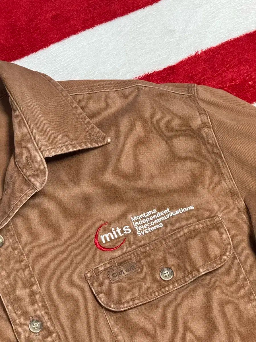 ヴィンテージなサンフェイディングされたキャメルブラウンのカラー感のユニークな刺繍がポイントの製品です。モールスキン生地で触れた時は柔らかい感じ이며、着るとヴィンテージムードの良いシャツですね。全体的にフェイディングされており、腕下方に若干の色移り以外はコンディション悪くない製品です。ヴィンテージな色褪せたカラー感がアメリカンヴィンテージムードの良い製品であり。フィットはスタンダードなフィットです。表記 m ですが、海外サイズのため、1〜2サイズ上だとお考えください~(実寸確認)