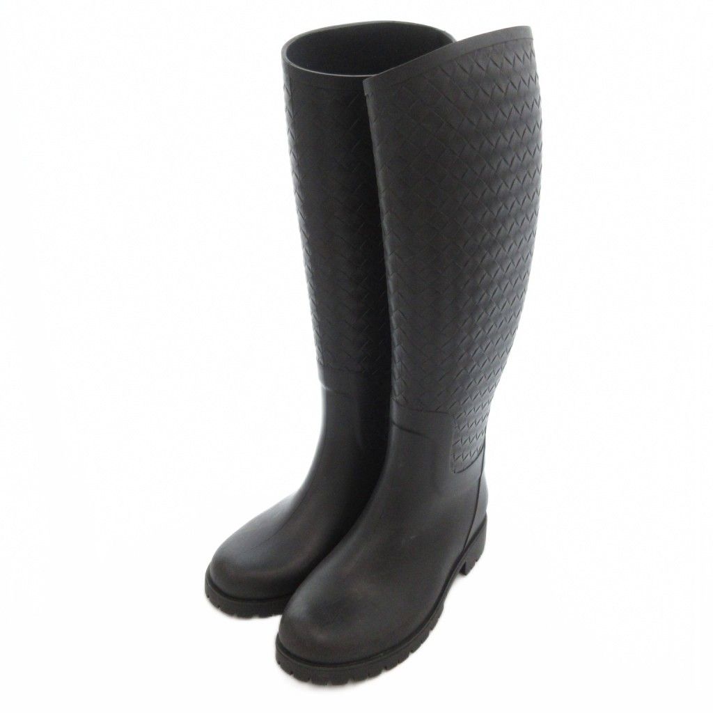 ボッテガヴェネタ BOTTEGA VENETA イントレチャート レインブーツ ラバーシューズ 長靴 36 黒 ブラック UO GY 19
