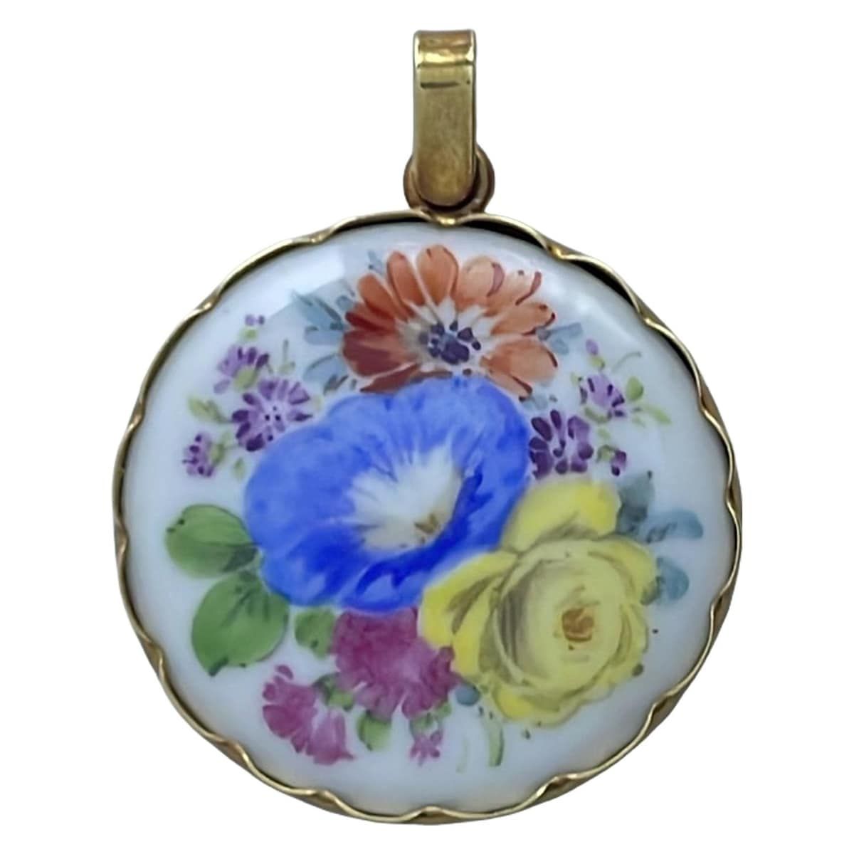 Meissen マイセン ペンダントトップ - K 14 YG×白×イエロー フラワー 花