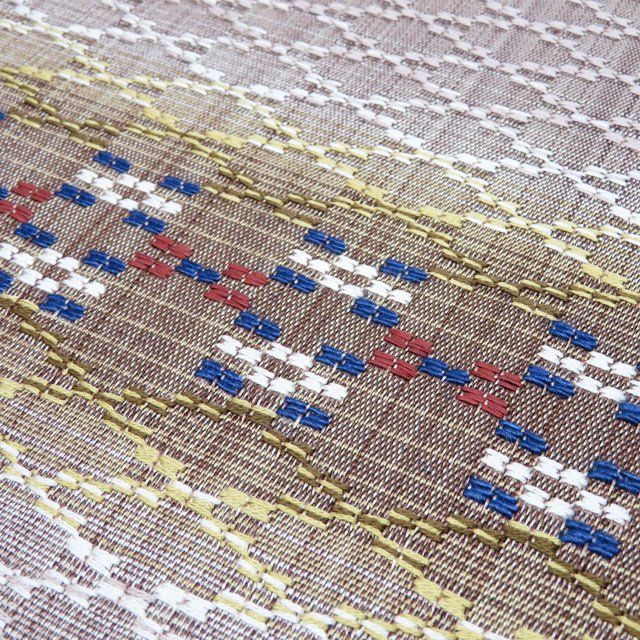 袋帯 正絹 カジュアル 未仕立て 六通 西陣織 証紙付き 花織 バンブー和紙織 薄茶系色 多色 きもの北條 A 1280-10