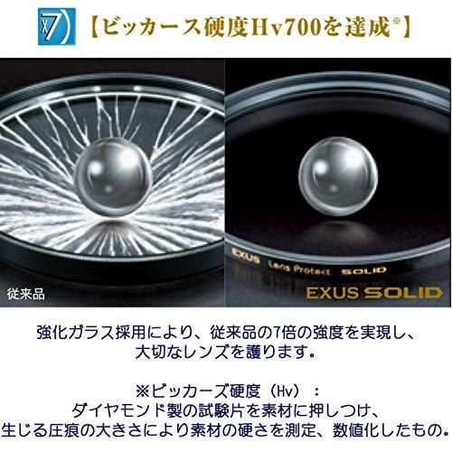 商品紹介 EXUS Lens Protect SOLID 【エグザスレンズプロテクトソリッド】とは ・従来製品よりも7倍の強度がある強化 ガラスを採用し、反射率0.2%を実現した可視光に影響を与えない、無色透明なレンズ保護フィルターです。 帯電防止・搬水・防汚コーティングを備え、レンズ本来の描写力を最大限に発揮します。 【ピッカーズ硬度Hv700を達成】 強化ガラス採用により、従来品の7倍の強度を実現し、大切なレンズを護ります。 【脅威の反射率0.2%を実現】 表面反射を極力に抑え、反射率0.2%を実現しました。 【帯電防止コーテイング】 静電気による微細なチリ・ホコリが付きにくい帯電防止コーティングを採用。 【撥水・防汚コーティング】 水滴や指紋汚れが付きづらい、撥水・防汚コーティング採用。 【仕様】: ・薄枠設計 ・サテン仕上げ ・ローレット加工 ・広角対応 ・レンズ外周墨入れ加工 ・レンズキャップ取付け可 ・レンズフード取付け可 ・フィルターケース付き ・デジタル ・フィルム使用可 ・日本製 受賞 デジタルカメラグランプリ2020 SUMMER 周辺機器部門 金賞