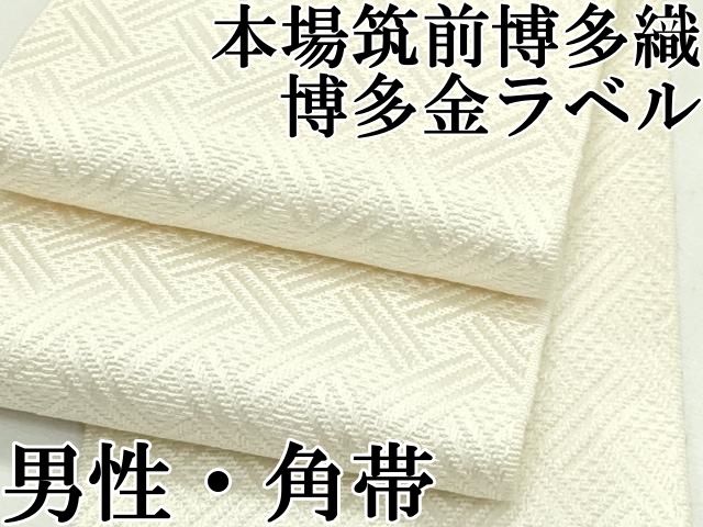 上 男性 本場筑前博多織 博多金ラベル 角帯 網目地紋 生成色 井上絹織謹製 証紙付き s 5