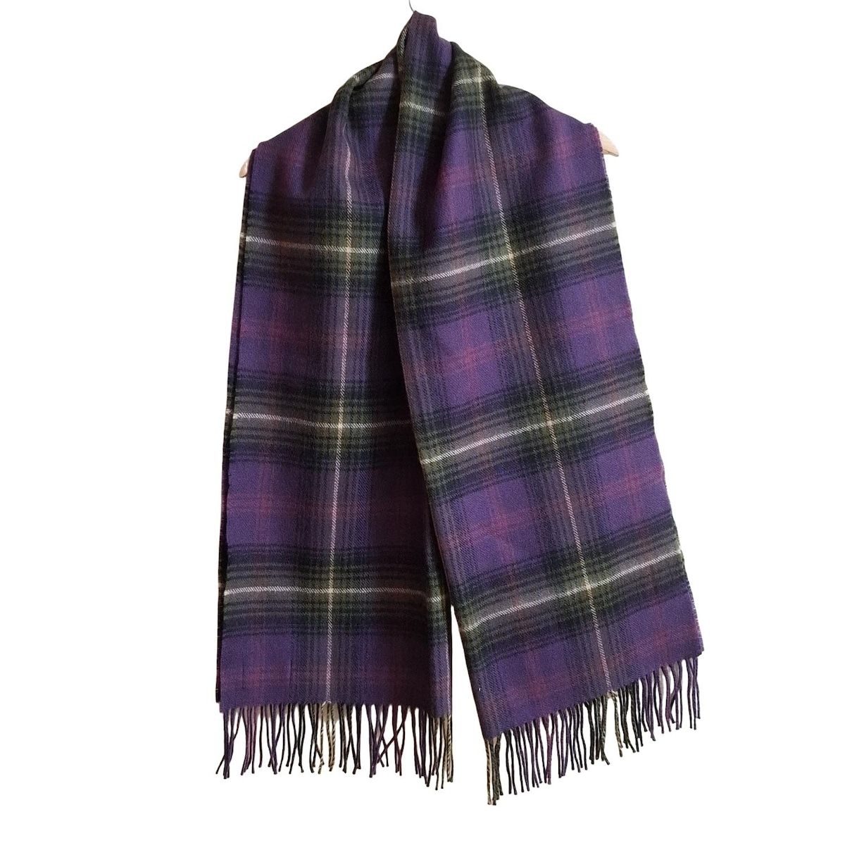 LOCHCARRON ロキャロン ストール ショール - パープル×カーキ×マルチ チェック柄 ウール