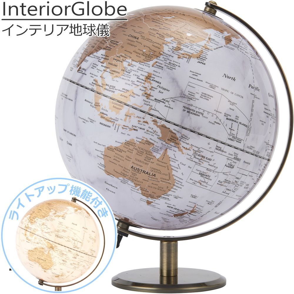 地球儀 光る ライト付き 英語表記 おしゃれ 大理石調 インテリア グローブ 台座 卓上 置物 ディスプレイ 書斎 リビング 子供部屋 球径24 cm W 25 5 D 24 H 30