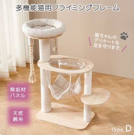 商品名:展望ベッド ハンモック付き キャットタワー 透明カプセル タイプD