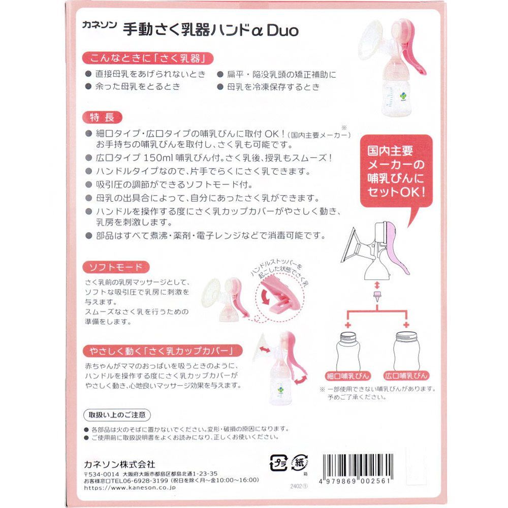 カネソン 手動さく乳器ハンドα Duo 哺乳びん付 pto
