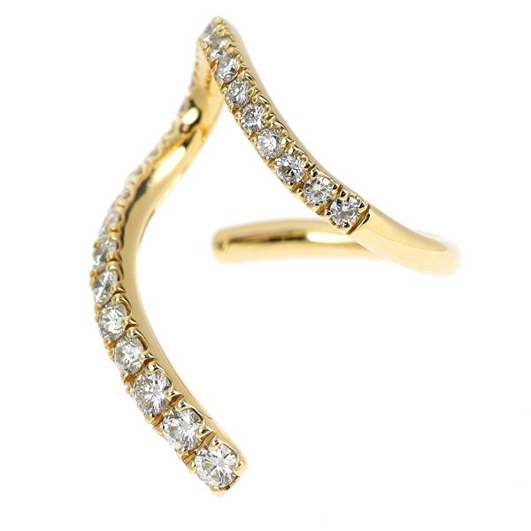 華道に通じる宝石生花という侘びの世界観をもつデザインを展開している、華宝流三代目家元、小笠原太華デザインのイエローゴールドリングです。大胆で躍動感のあるラインが特徴のフォークデザイン。ひとつひとつ瑞々しい煌めきを放つ上質ダイヤモンドが美しく連なり、華やかさあふれる一品に仕上げられています。存在感のある大きさながら不思議と指に馴染む、個性的でアーティスティックなジュエリーをお楽しみください。