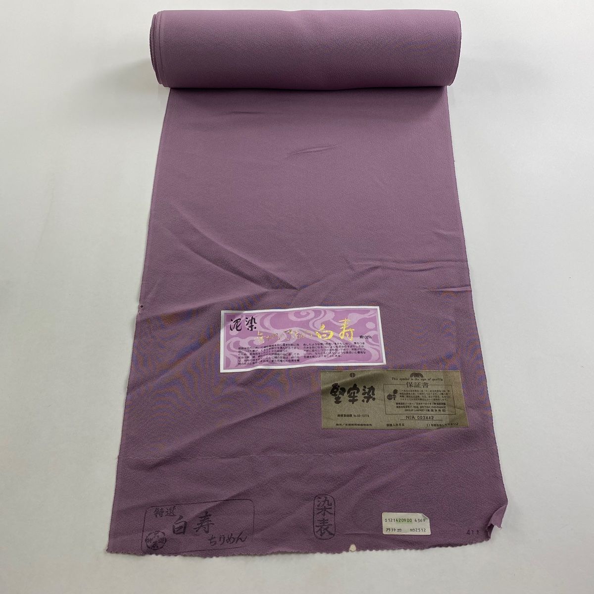 反物 秀品 色無地 堅牢染 家紋有 落款有 薄紫 正絹