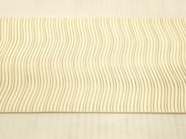 平和屋着物 夏物 絽綴れ 八寸名古屋帯 よろけ縞 薄卵色 正絹 cm
