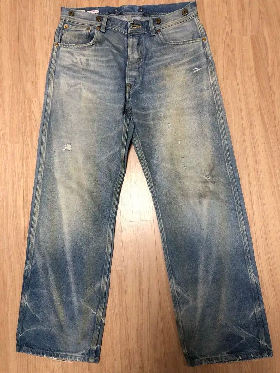 Lee 101 100周年 記念 1世代 セットアップ 商品 です。 全体的に ウォッシュ が たくさん 入って いて、 ダメージ ディテール が あります。 ヴィンテージ な 粋 を お好きな 方 に オススメ です。 コメント 無ければ すぐに 安全決済 して いただければ 結構です!