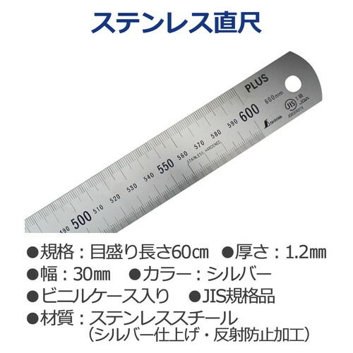 プラス 定規 ステンレス直尺 60 cm 1 2 mm厚 シルバー 3本セット