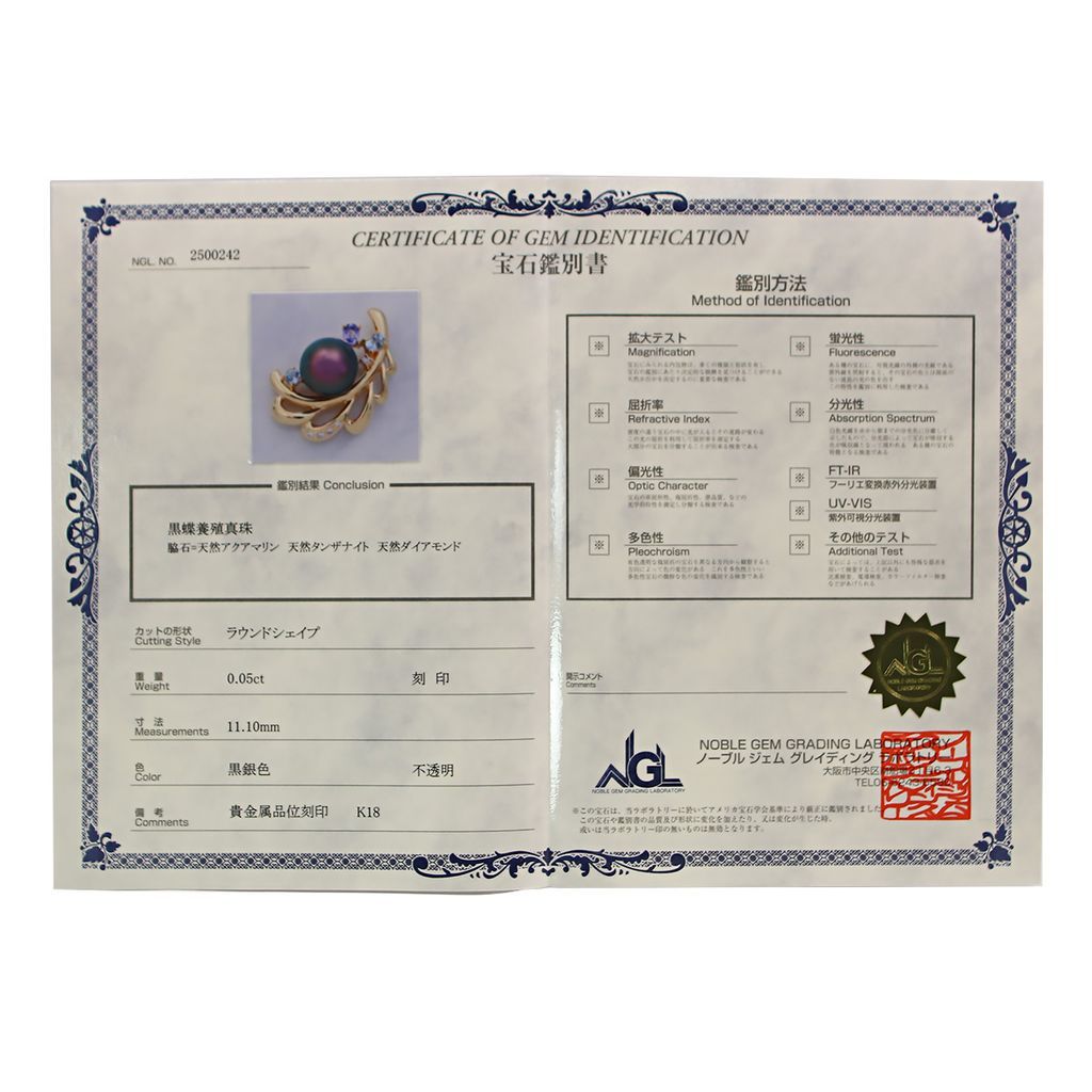 ペンダントトップ TASAKI タサキ K 18 黒真珠 11.1mm ダイヤモンド タンザナイト アクアマリン s