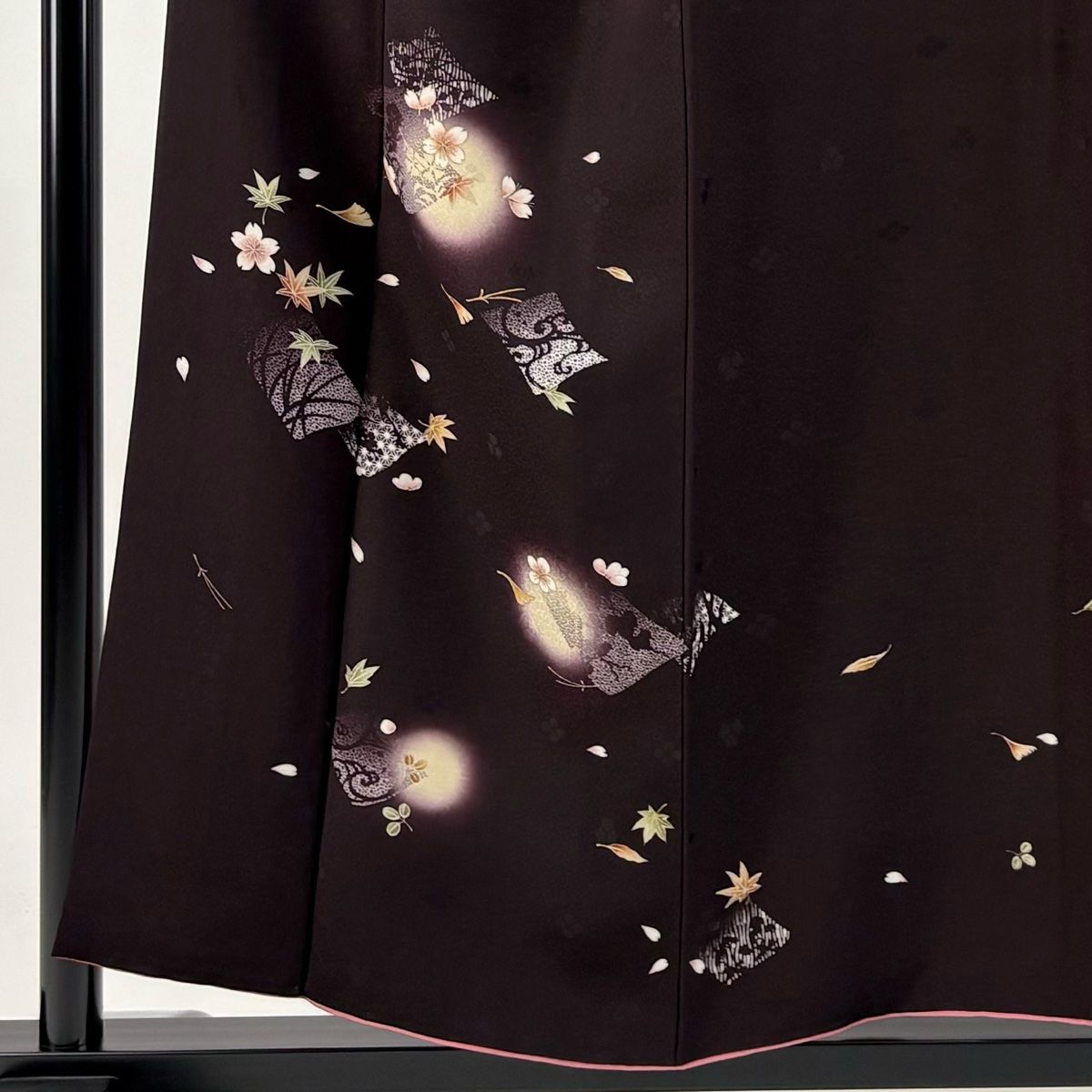 付下げ 身丈154 cm 裄丈66 M 袷 坂東三津五郎 やまと 落款 桜 楓 金彩 ぼかし 茶紫 正絹