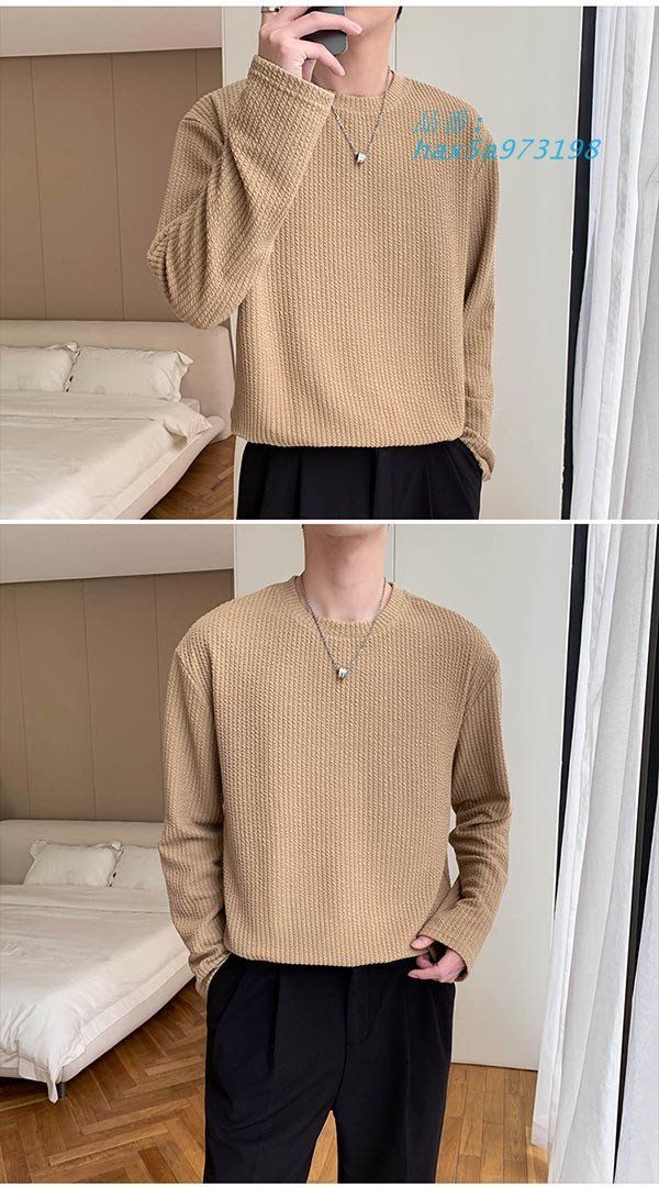 カットソー メンズトップス 長袖 ネック 大きいサイズ 春 ベージュ ブルー L 秋 ブラウン ブラック ホワイト グリーン 2 XL M hax 5 a 973198
