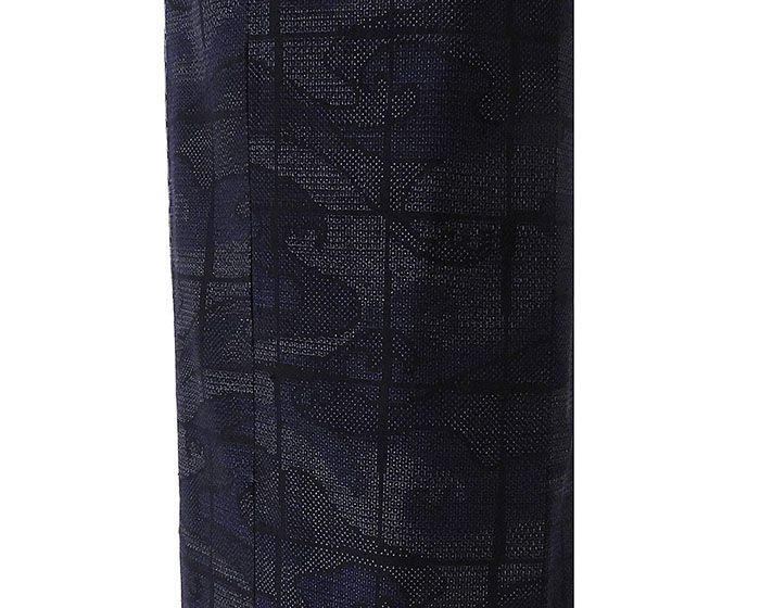 濃紺や紫・白藍・オフホワイトで格子立浪模様が柄付けされています。