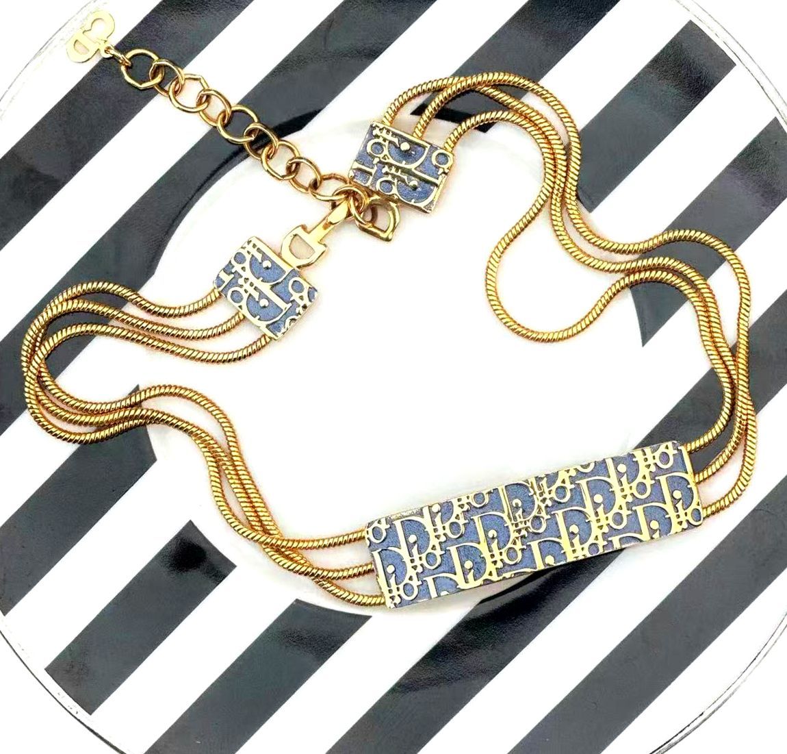 超 クリスチャンディオールChristianDiorヴィンテージトロッターDIORロゴネックレスチョーカーゴールド金具刻印あり