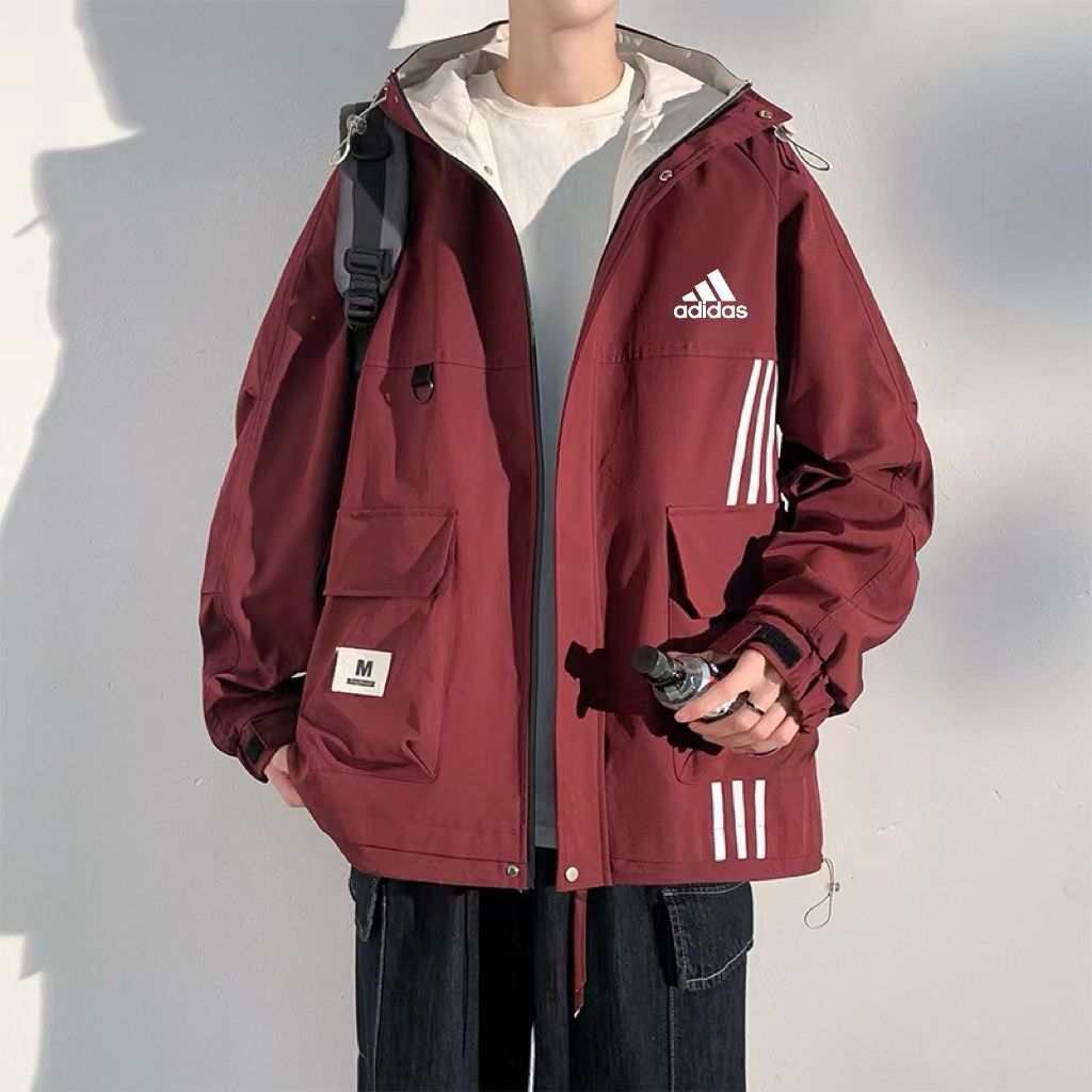 アディダス Adidas 春と秋の新モデルのレジャージャケット 男性用 どんなものにもマッチする通気性のあるアウタージャケット アメリカンスタイルのフード付きで 感あふれる レラックスフィットのライダージャケット -MM輸入1