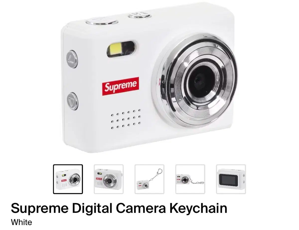 Supreme デジタルカメラキーチェーンです。白のカメラ形状にSupremeロゴがPOINTで入っています。バッグやキーに付けても可愛いです。コメントがなければ、すぐにお支払い手続きをお願いいたします!