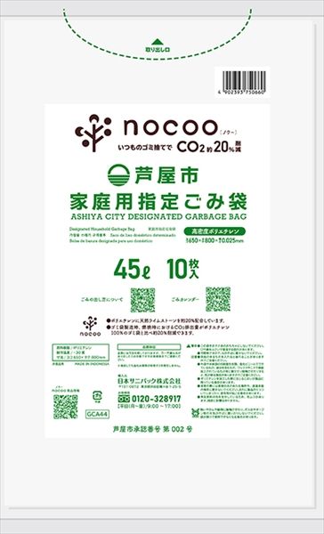 60点セット GCA44 芦屋市指定袋 平袋 45L 日本サニパック ゴミ袋 ポリ袋