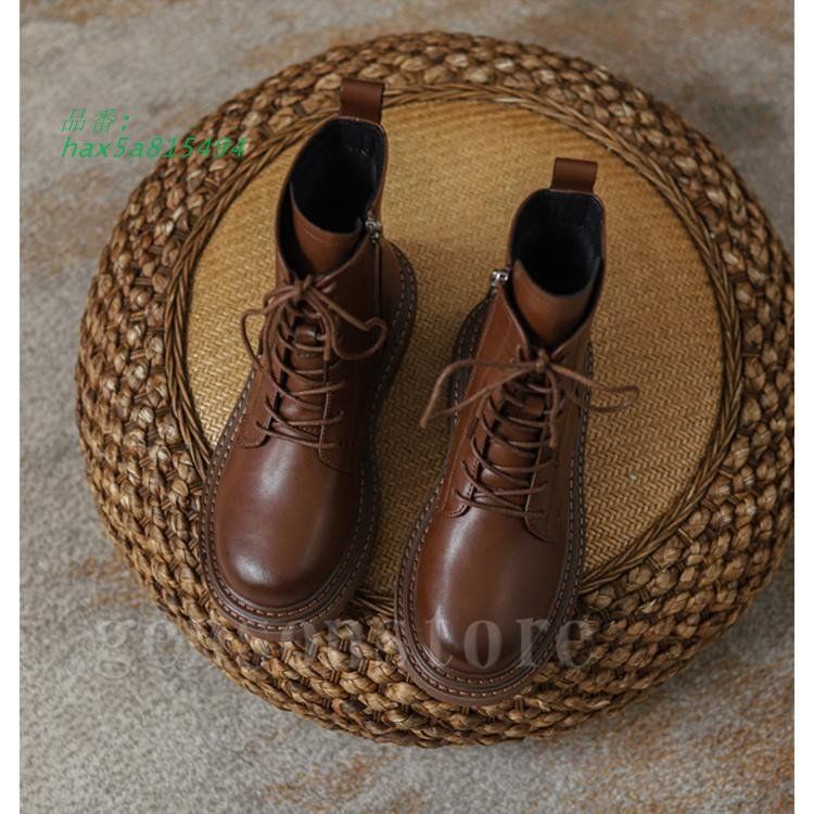 キーワード :ショートブーツ 。 レザー 厚底 レディース 全2色 22.5CM-25.0CM 編み上げブーツ ブラウン 黒 歩きやすい レディース靴 秋ブーツ 履きやすい レースアップブーツ 厚底 ミドルブーツ 女性 疲れない ぺたんこ ブーツ