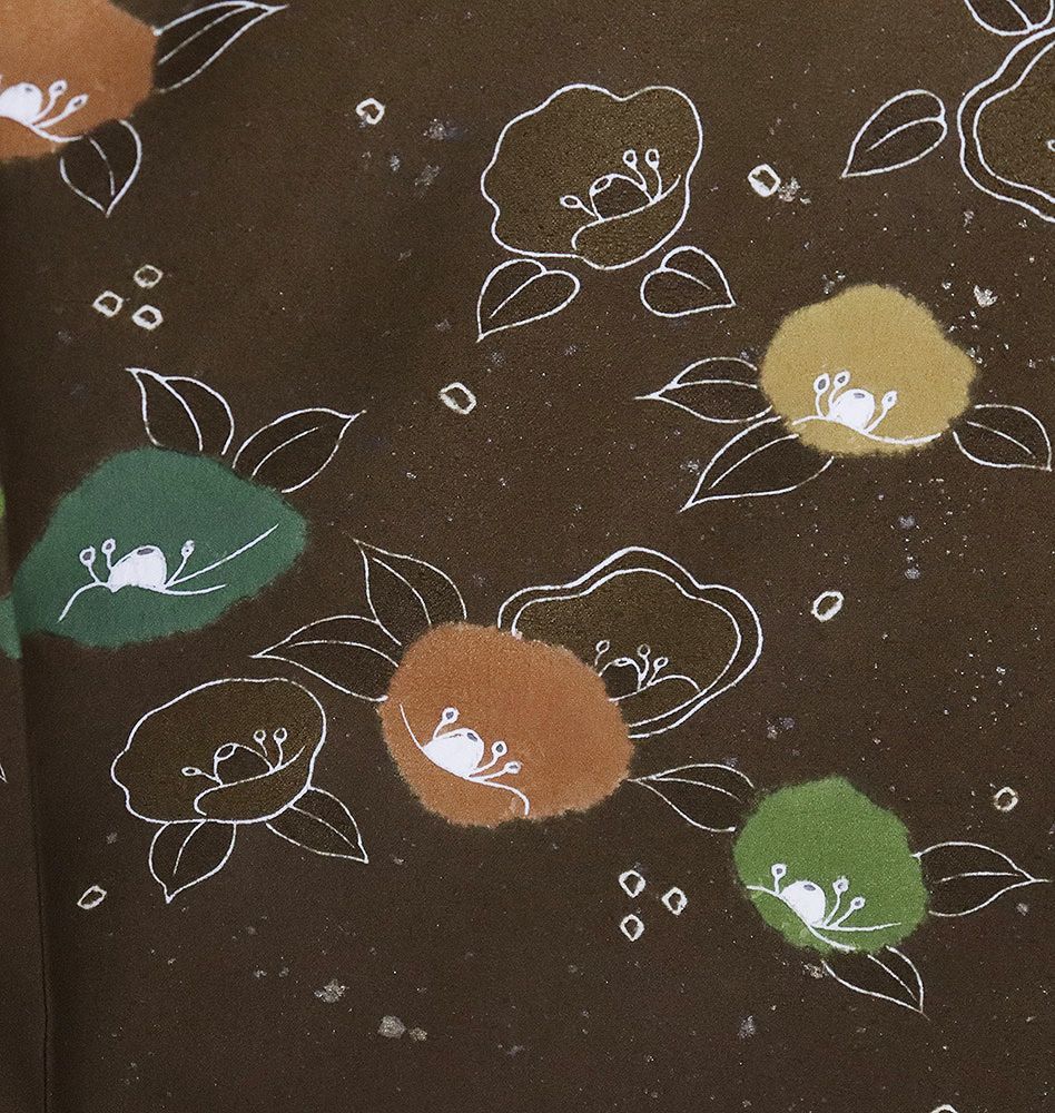 訪問着 袷 正絹 黄土色 赤茶 金箔 暈し 椿 SSサイズ ki 31151 レディース シルク ギフト フォーマル 30代 40代 50代 み