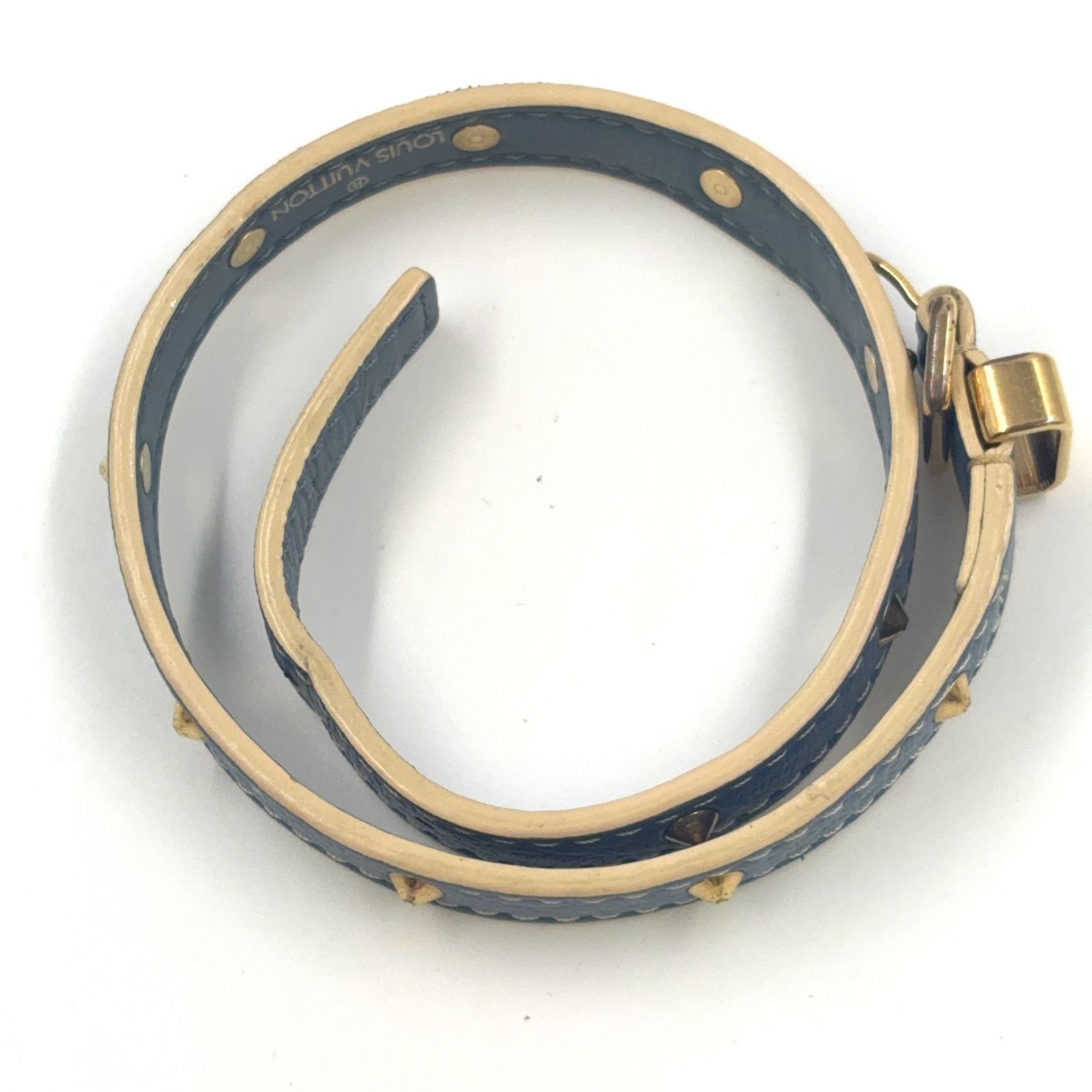 LOUIS VUITTON ブラスレ ドゥブルトゥール スハリ レザー ブルー バングル ゴールド M 91845