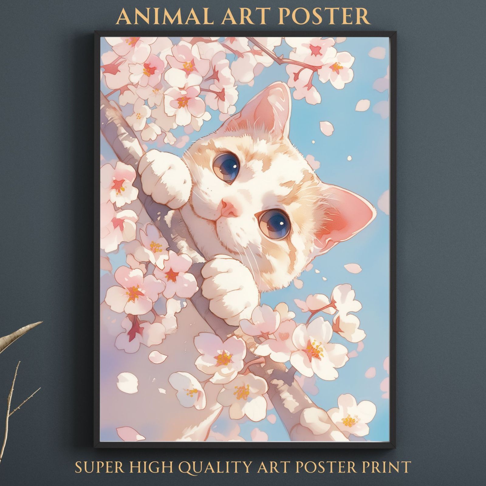 【桜猫戯舞】は、桜が舞う春の穏やかな陽だまりの中、スコティッシュフォールド猫(Scottish Fold Cat)が可愛すぎるアートポスター作品です。