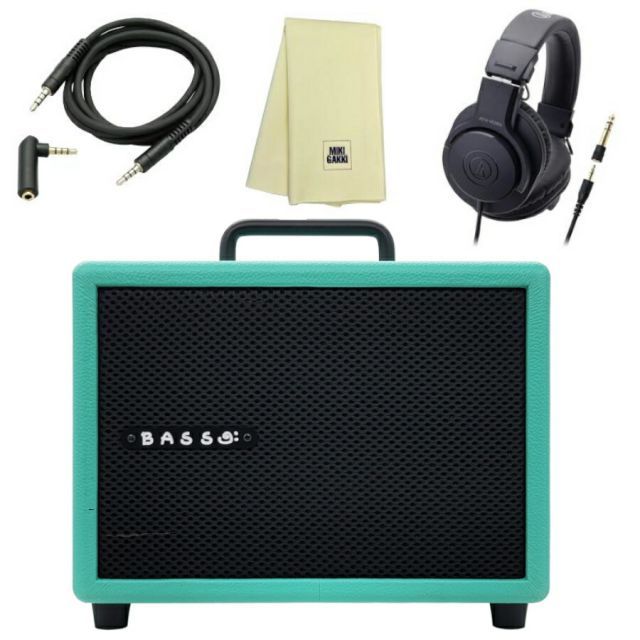 ベース アンプ LOUD MINI-B グリーン クロス ミニステケーブル ATHM 20 X ヘッドホン 小型 超軽量 低音域もしっかり再 生できるベースアンプ