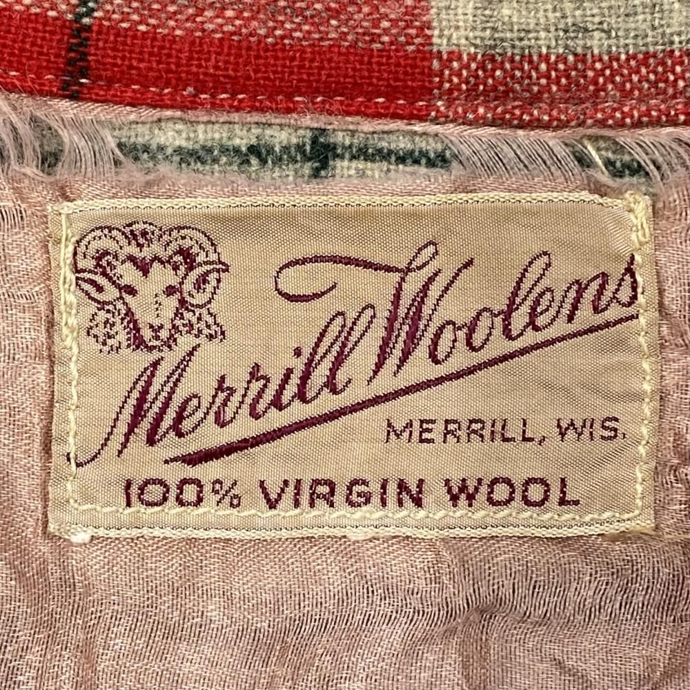 50s Merrill Woolens ウールシャツジャケット サイズ表記なし レッド 襟部分破れ有