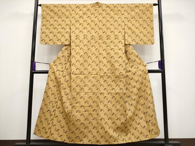 平和屋着物 上 国指定重要無形文化財 本場久米島紬 手織 単衣 黄土色地 s 5