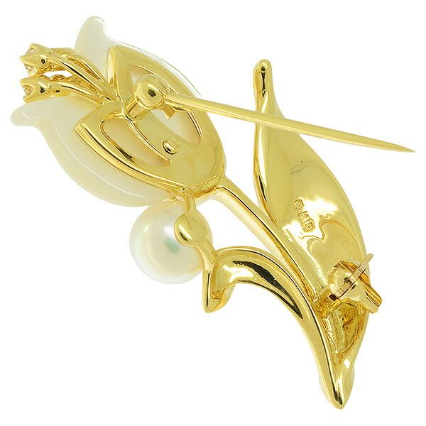 可 ミキモト フラワー シェル アコヤ真珠 ダイヤ ブローチ K 18 YG 仕上げ済み