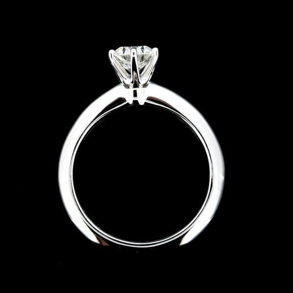 ダイヤモンドは6本の爪でしっかりと留められており、シンプルながら洗練されたデザインのダイヤモンドリングです。