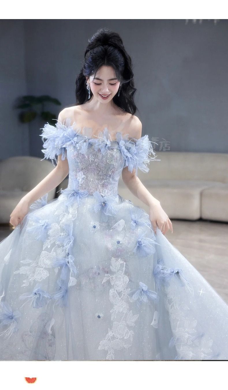 カラードレス ウエディングドレス パーティードレス 演奏会 発表会 花嫁 イブニングドレス ブライダル 二次会 ロングドレス エレガント 青