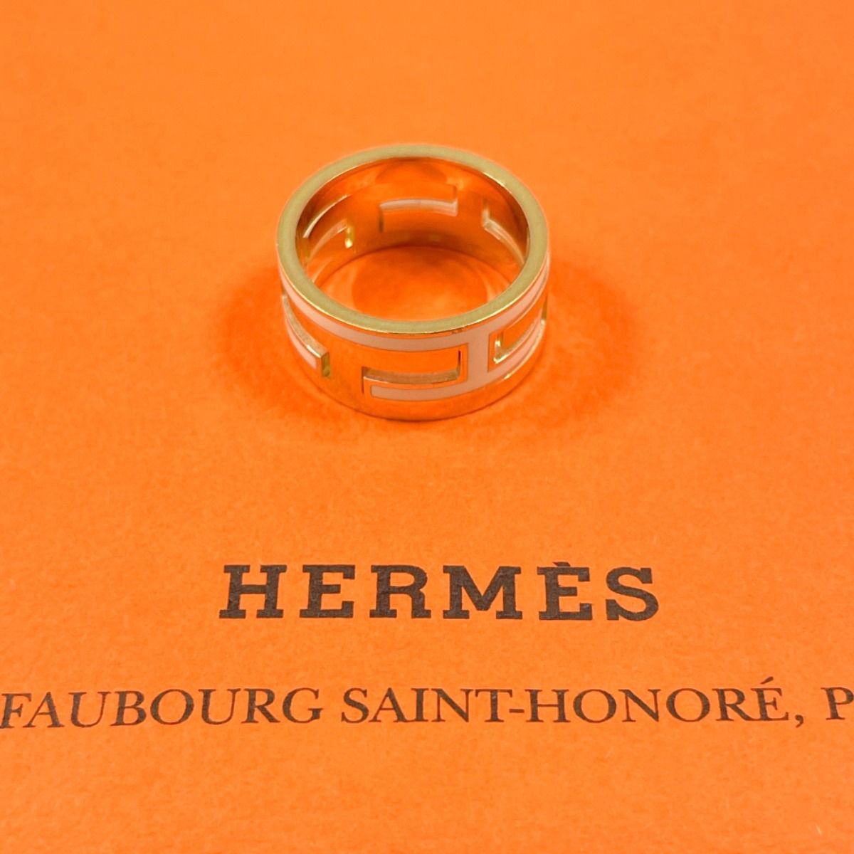 エルメスを象徴するHモチーフをモダンにアレンジした、洗練されたデザインのリング。ゴールドとアイボリーの調和が生み出す上品な輝きが、手元を美しく引き立てます。