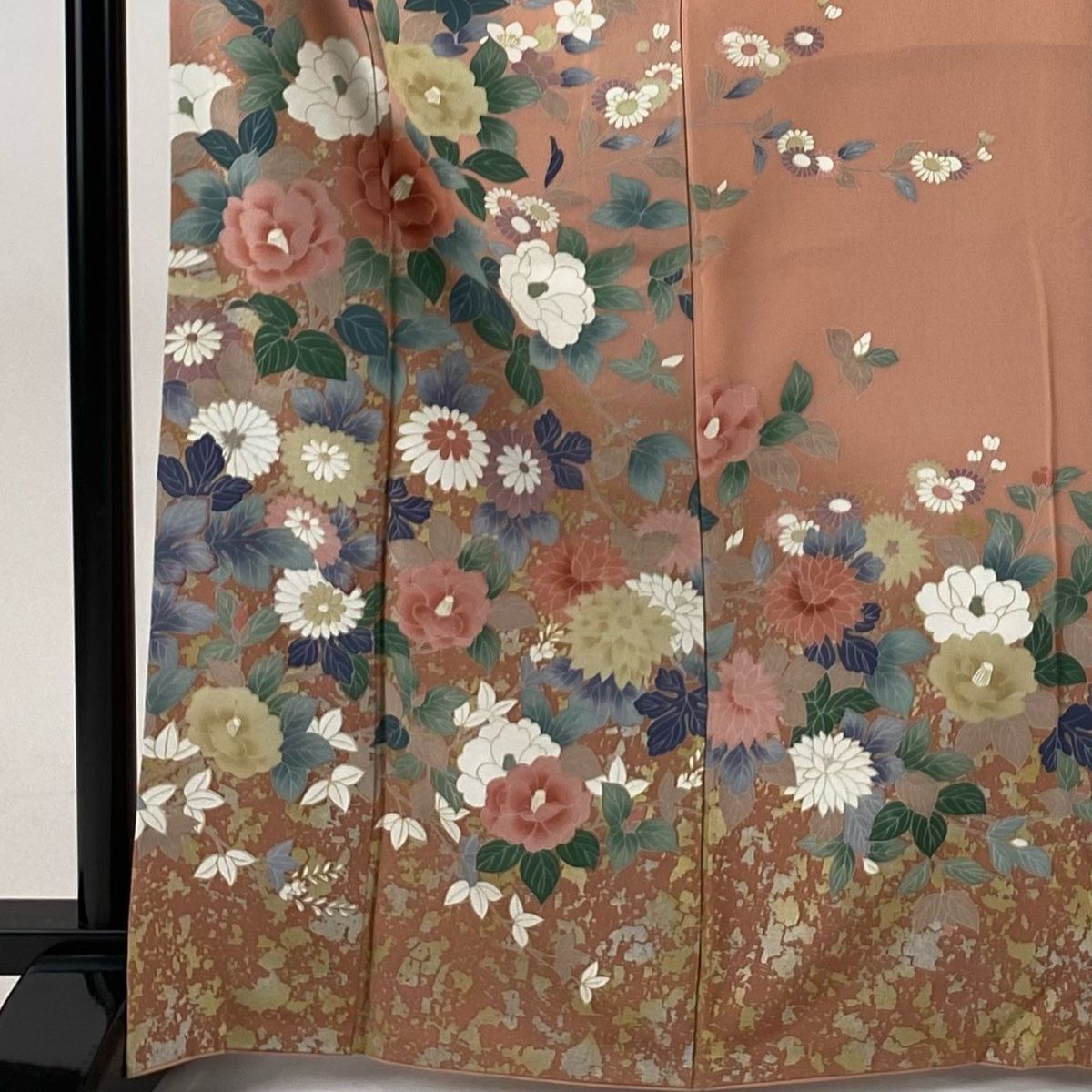 訪問着 身丈167 cm 裄丈66 M 袷 椿 枝花 金銀彩 サーモンピンク 正絹 秀品