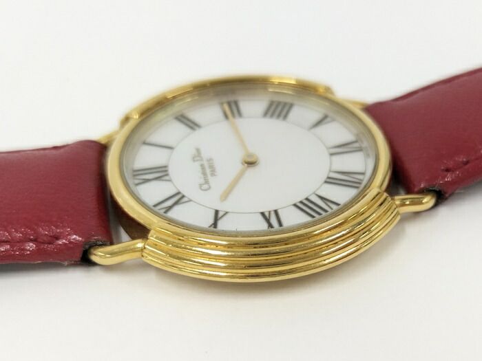 Christian Dior レディース 腕時計 クオーツ SS GP レザー レッド シェル文字盤 社外ベルト