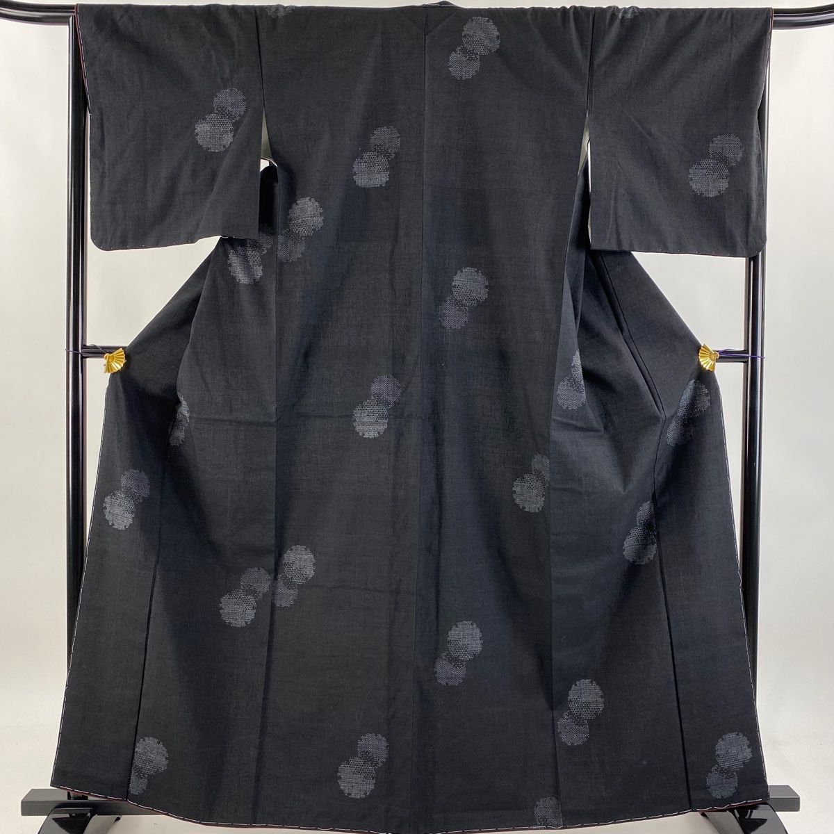結城紬 身丈162 cm 裄丈66 M 袷 本場結城紬 証紙 雪輪 墨色 正絹