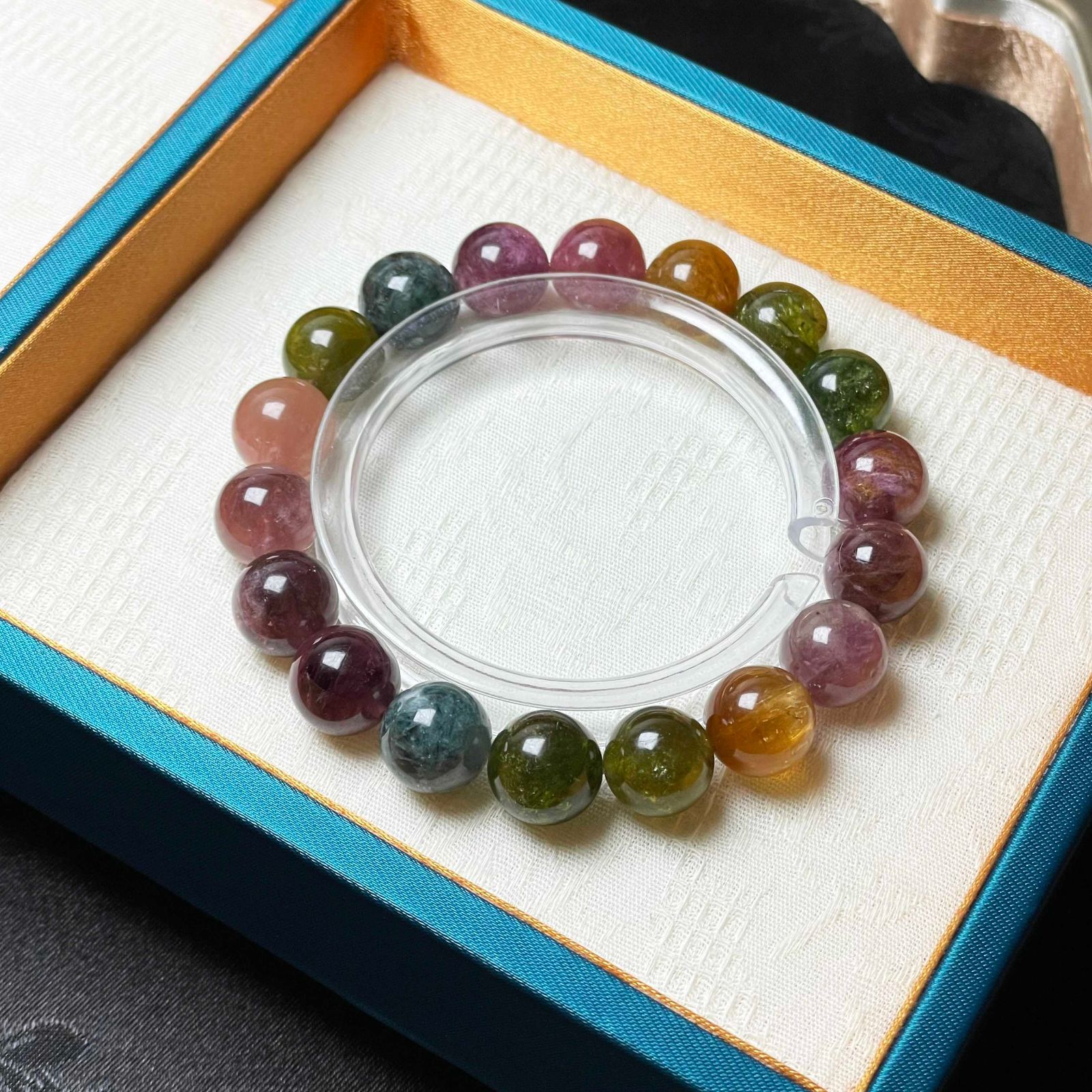 EU製 ミックス トルマリン ブレスレット パワーストーン 天然石 お守り 約11.2-11.6 mm ZZ 1648