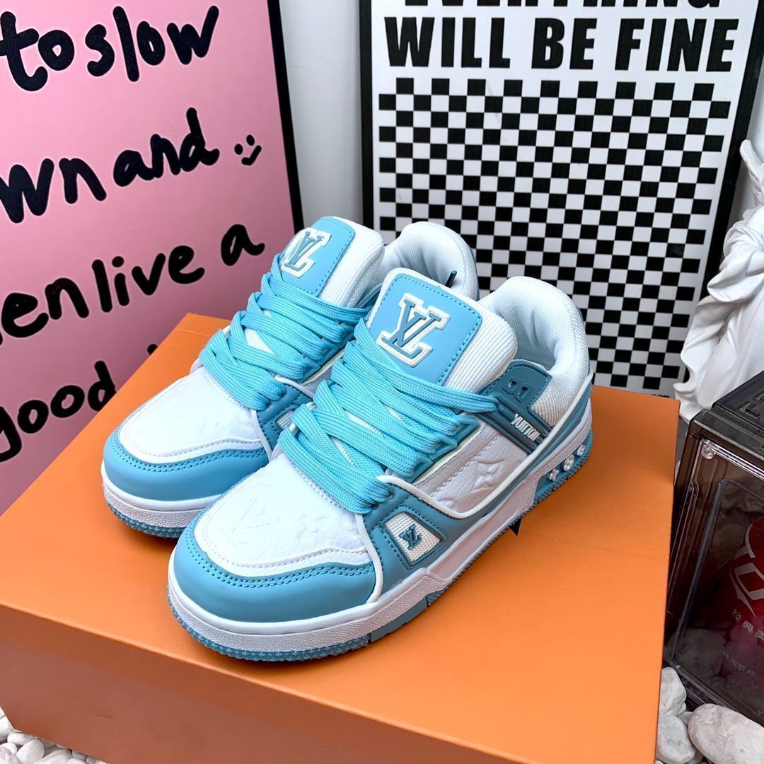 LOUIS VUITTON Trainer レザーカジュアルロートップファッションスニーカー青と白| |