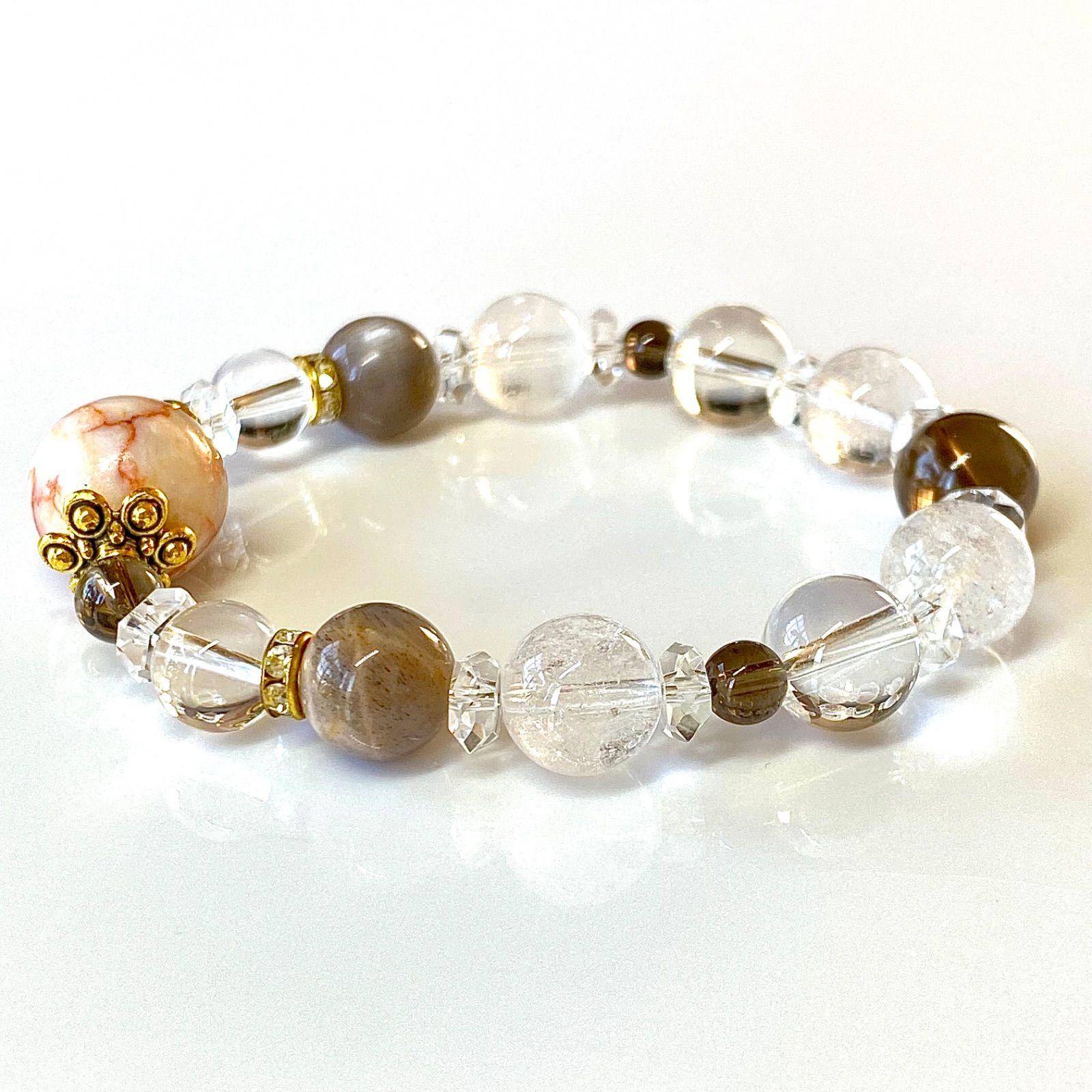 心身の癒し レッドゼブラジャスパー ブラウンムーンストーン 光波動 ブレスレット